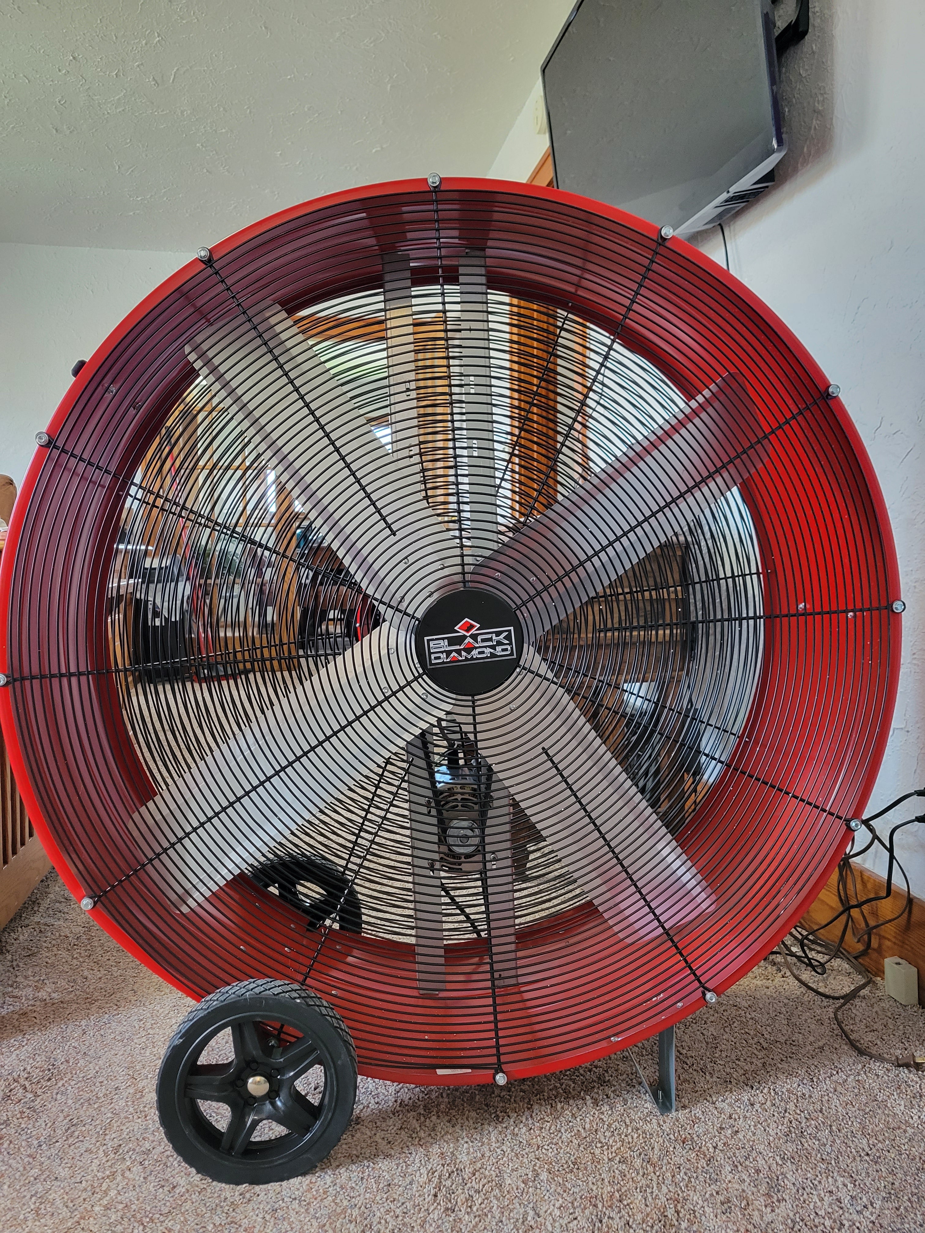 Both fans can be used for drying out basements and keeping people and machines cooled off indoors.